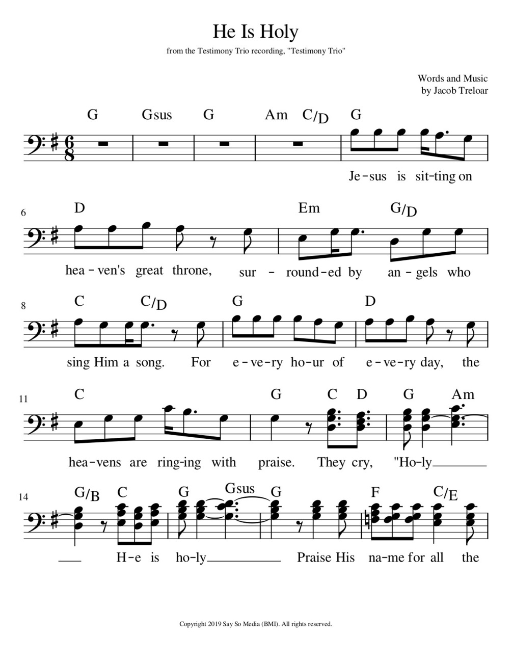 He Is Holy$5$5https://schema.org/InStockusdSay So MediaSay So Media The song "He Is Holy" as recorded by the Testimony Trio. QuantityAdd to cartSize66.3 KBLength5 pagesAdd to wishlist New wishlistShare on XShare on Facebook Copy linkCopy product URL